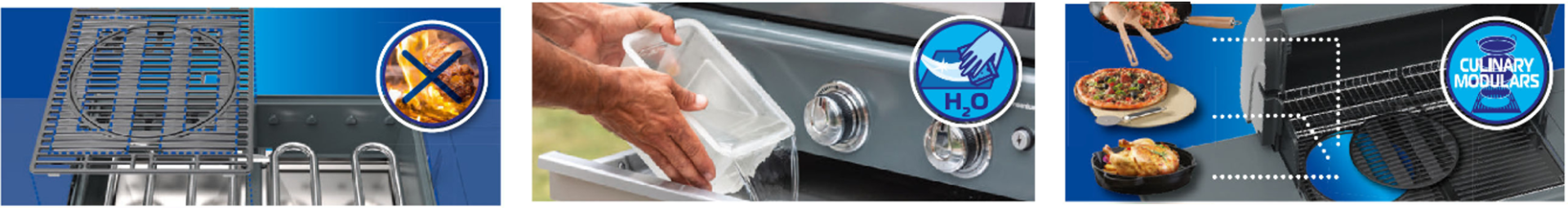 Potência: 12.500 W + 2.300 W Queimador Lateral 3 Queimadores de Chama Azul Aprimorados em Aço Inoxidável O sistema de queimadores otimiza a distribuição de calor e reduz a formação de chamas. Grelha/Chapa Reversível em Ferro Fundido Superfície de Cozimento: 2.806 cm² (61 x 46 cm) Múltiplas opções de cozimento com o Módulo Culinário. Opção de Grelha de Aquecimento e Motor para Espeto Rotativo Ignição InstaStart™ com controles iluminados Tampa de aço e alumínio com termômetro. Sistema InstaClean™ Aqua Pro para limpeza mais fácil e sem esfregar, com coletor de gordura frontal. Mesa lateral Push2Fold resistente Estrutura inferior fechada com portas, 4 rodízios giratórios aprimorados com freios e capacidade para garrafas de 13 kg. Garantia limitada de 5 anos para queimadores, tampa de aço e alumínio e superfície de cozimento em ferro fundido.