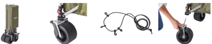 • Carrinho dobrável com rodas de borracha preta e cordas elásticas