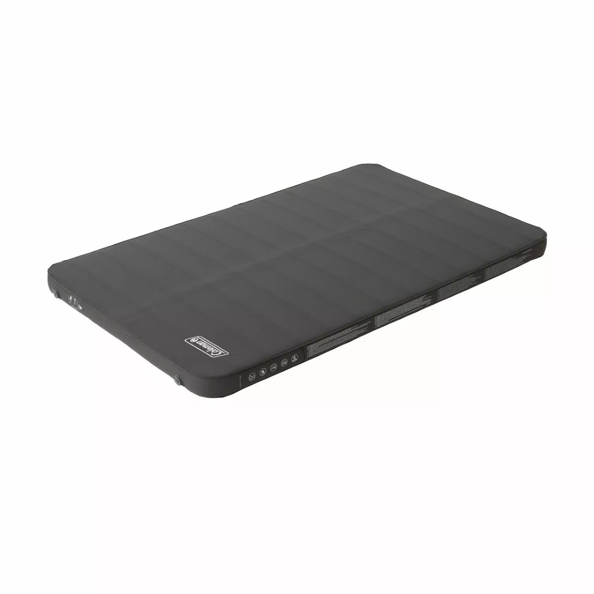 • Colchão de campismo cinzento escuro com etiqueta CAMPMASTER